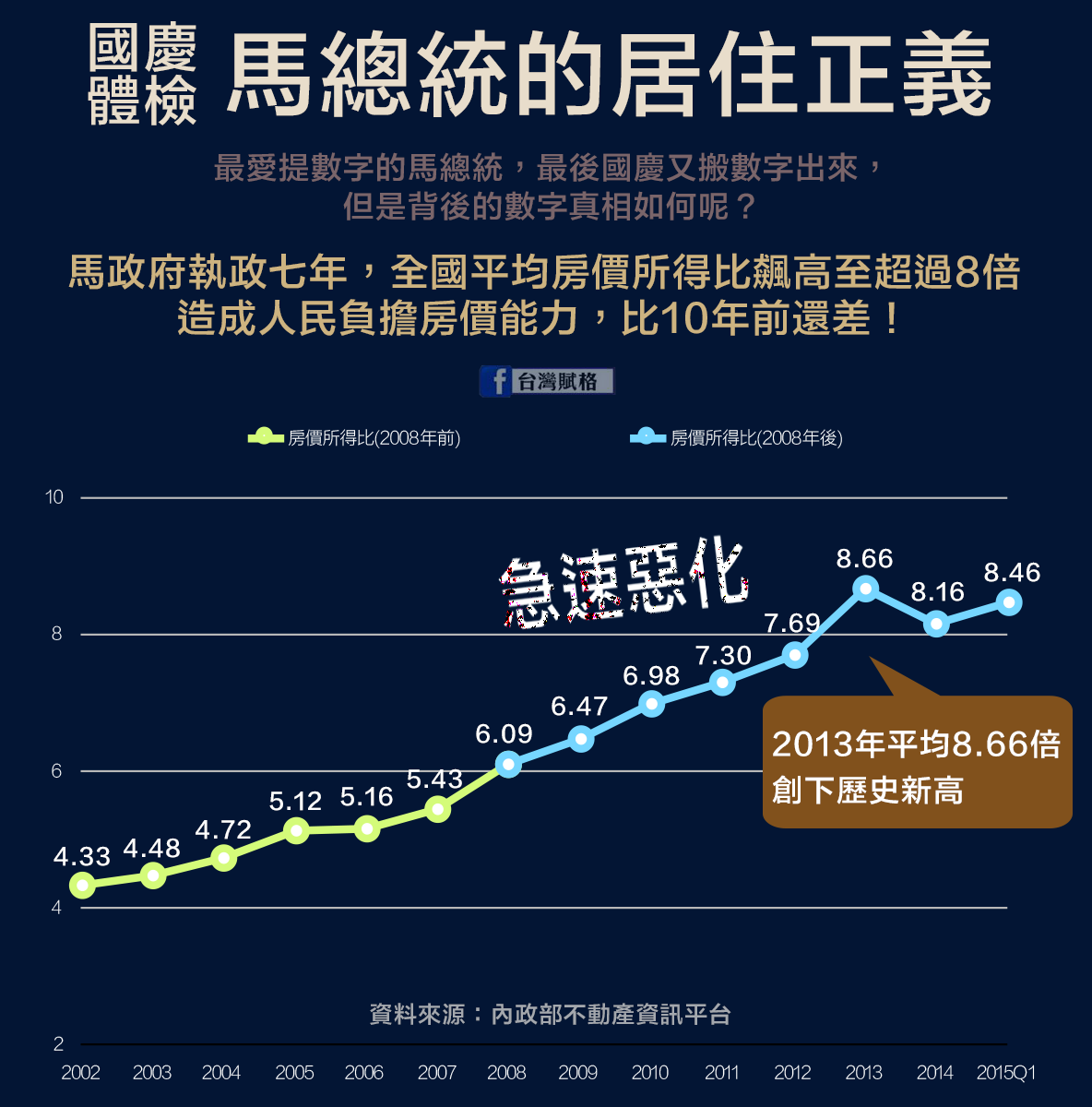 馬英九執政全國房價所得比創歷史新高,購屋困難翻倍